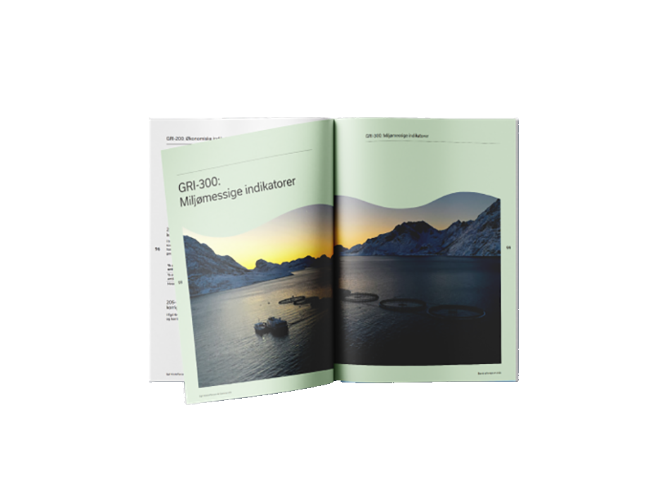 Vi produserer komplette bærekraftsrapporter, med tema som nøkkeltall, strategi, ringvirkninger, historier fra året, samfunnsengasjement, sertifiseringer, samt en GRI-del med GRI 102, 103, 200, 300 og 400.